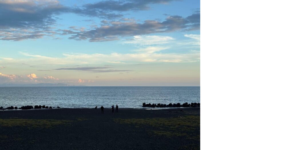萩錦酒造は海のほど近くにあり、BBQのあと、夕暮れの海岸まで足を伸ばした。